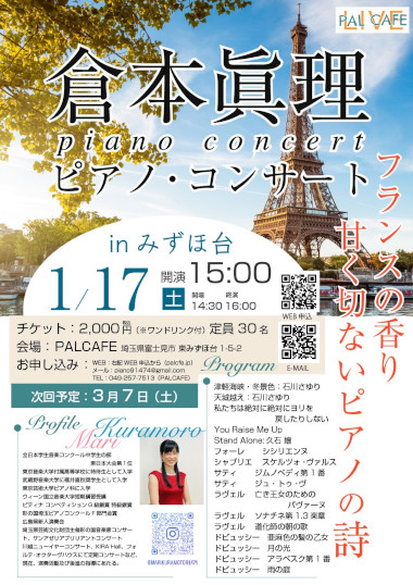 教念寺門信徒の倉本眞理さんが、ピアノ・コンサートを開かれます。 皆様お誘いあわせのうえご鑑賞ください。