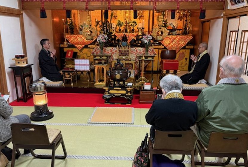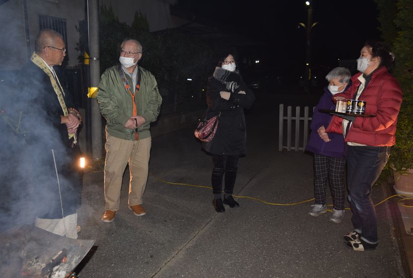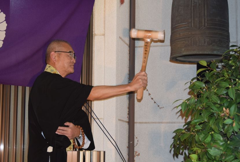讃仏偈のおつとめの後住職のあいさつがあり、0時ちょうどから門信徒のみなさまと鐘を撞きました。火にあたりながら一年を振り返り、思い出話をしながら年を越しました。